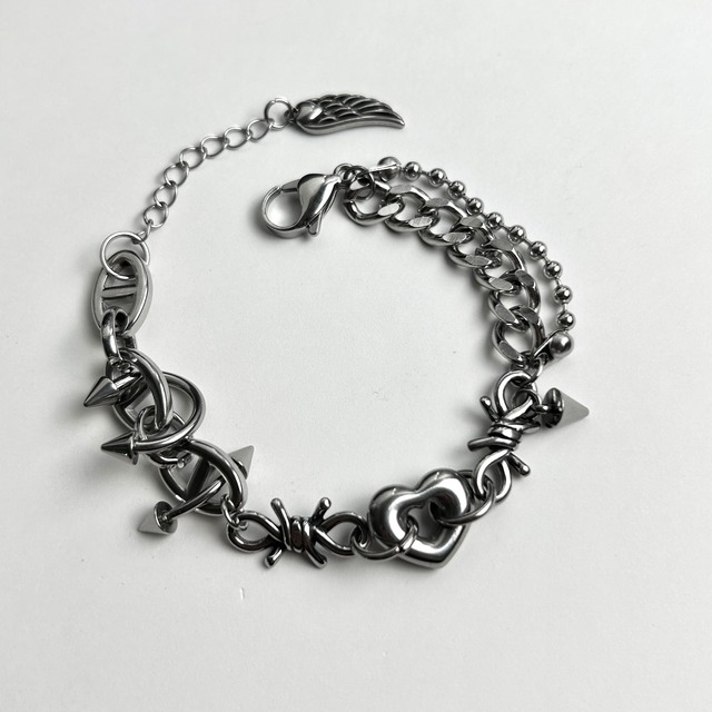 ⚪︎手首周り約18cm アジャスター約3cm ⚪︎素材:ステンレス鋼、真鍮(黒のハートのチャーム)