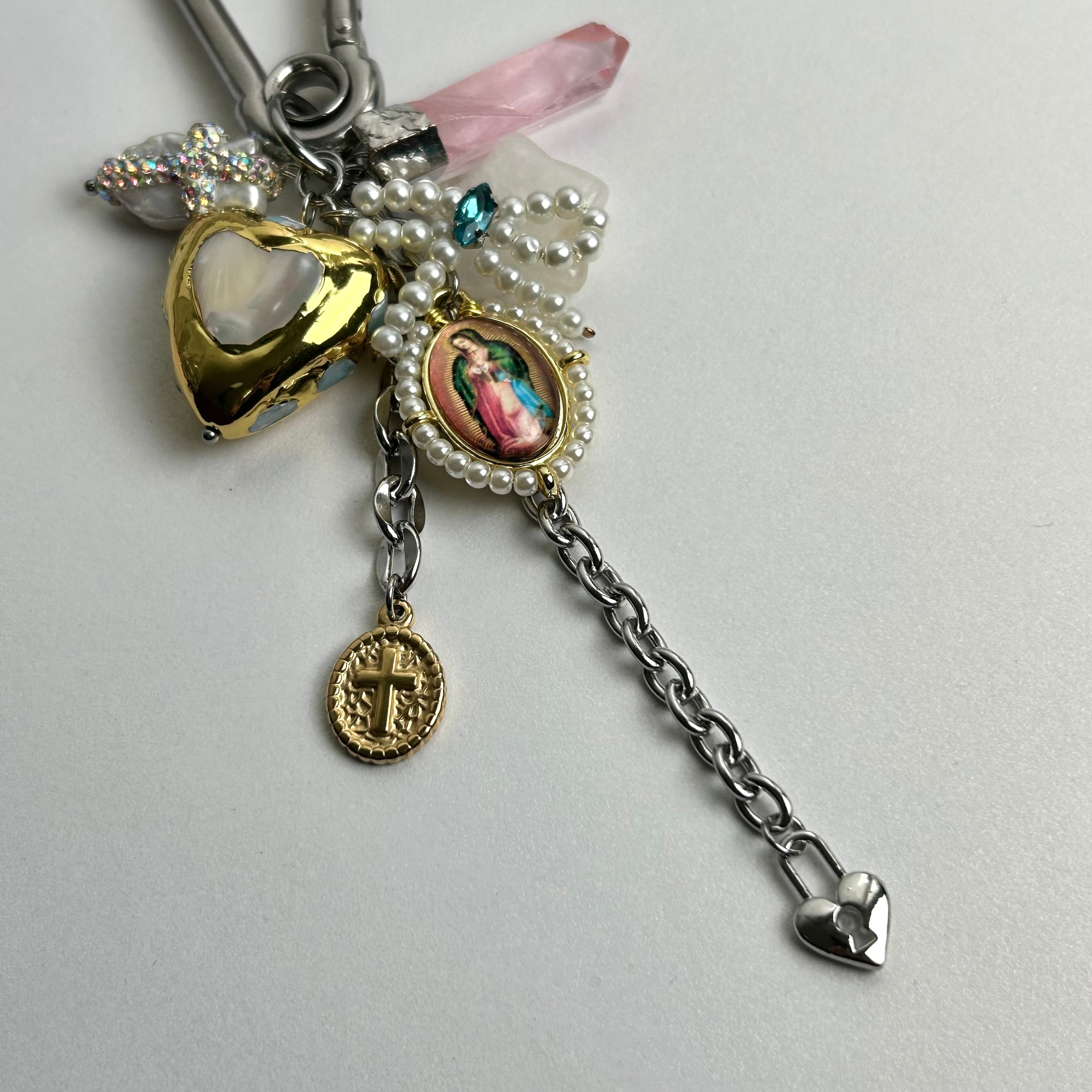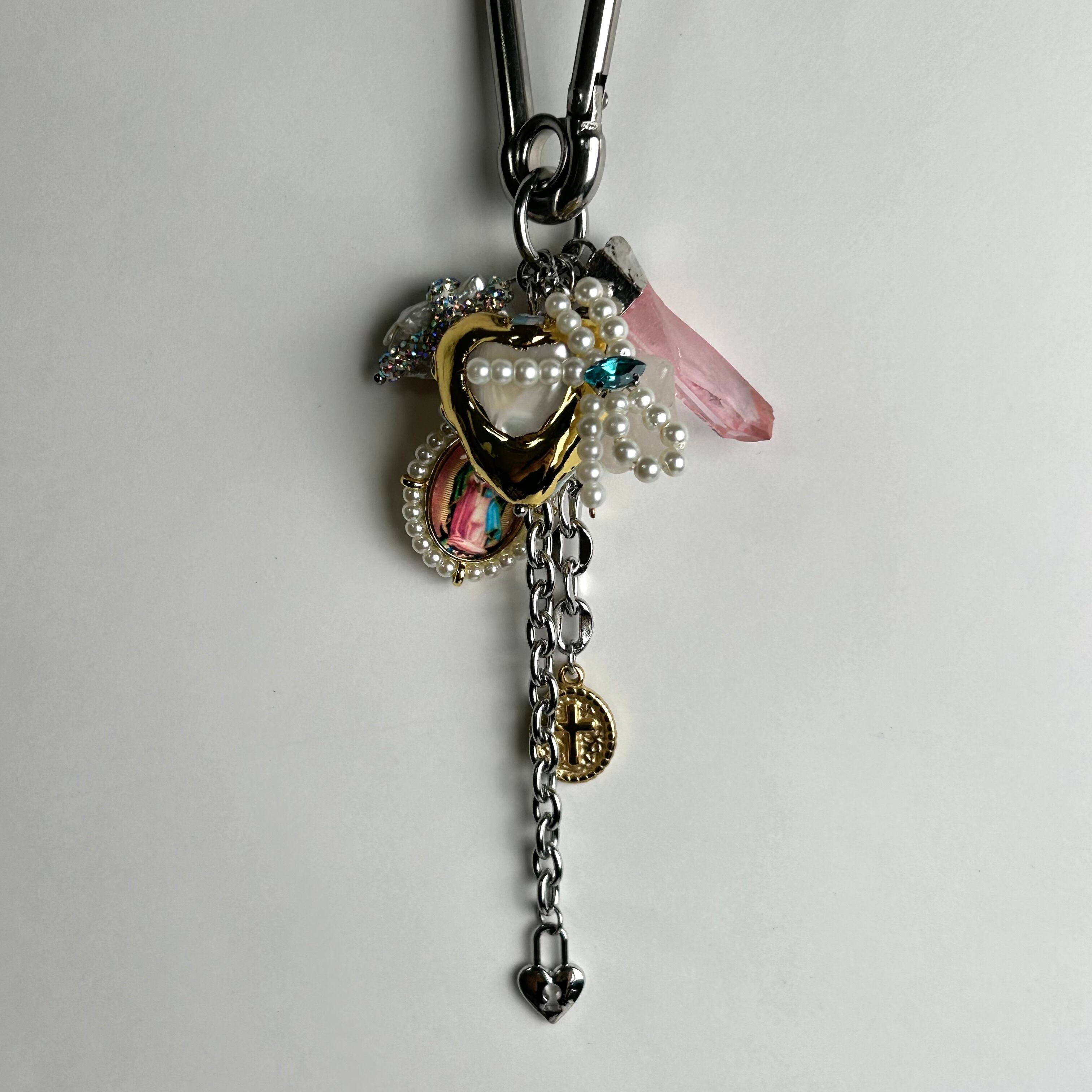 ⚪︎全長約16cm ⚪︎素材:カラビナ→ステンレス鋼 その他→ステンレス、一部真鍮、鉄、合金含む。天然石、淡水パール、アクリルパール