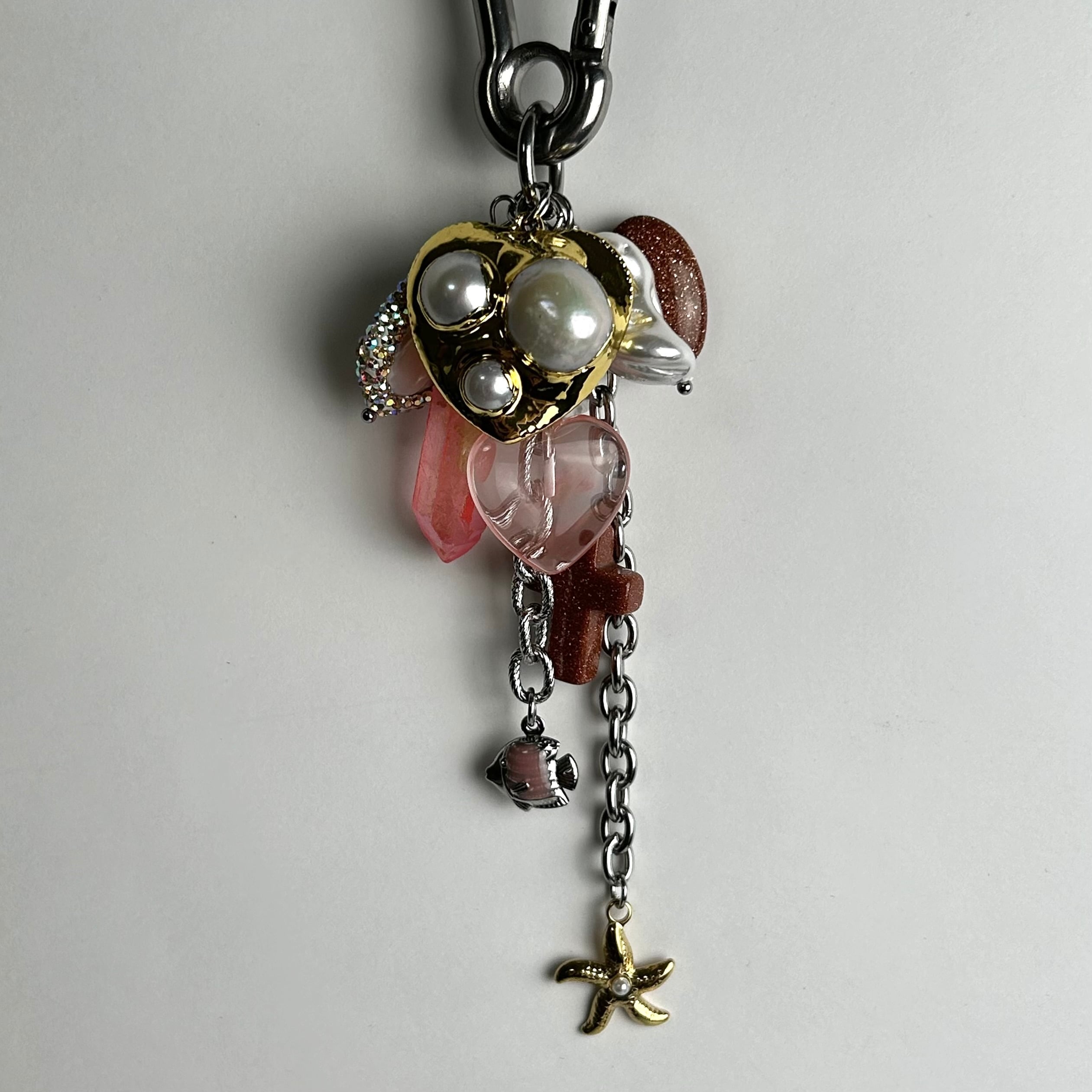 ⚪︎全長約16cm ⚪︎素材:カラビナ→ステンレス鋼 その他→ステンレス、一部真鍮、鉄、合金含む。天然石、淡水パール、シェル