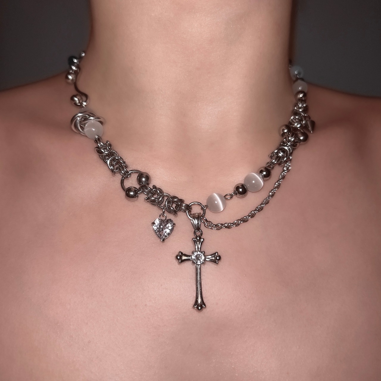 ⚪︎首回り約40.5cm アジャスター約5cm ⚪︎主な素材:ステンレス鋼、ガラスビーズ