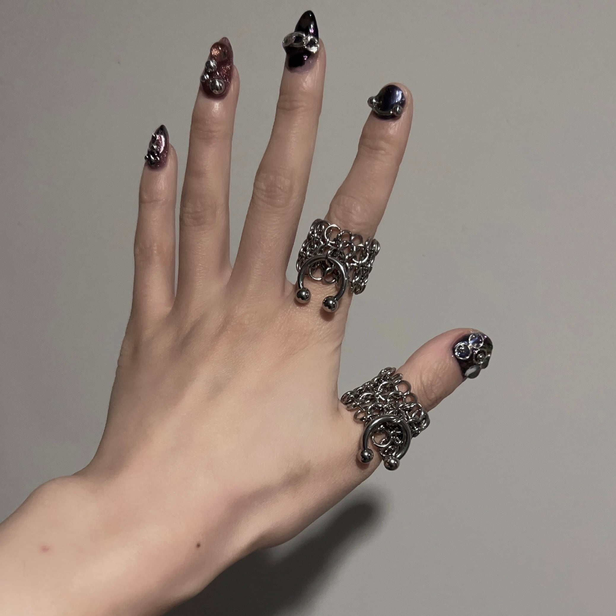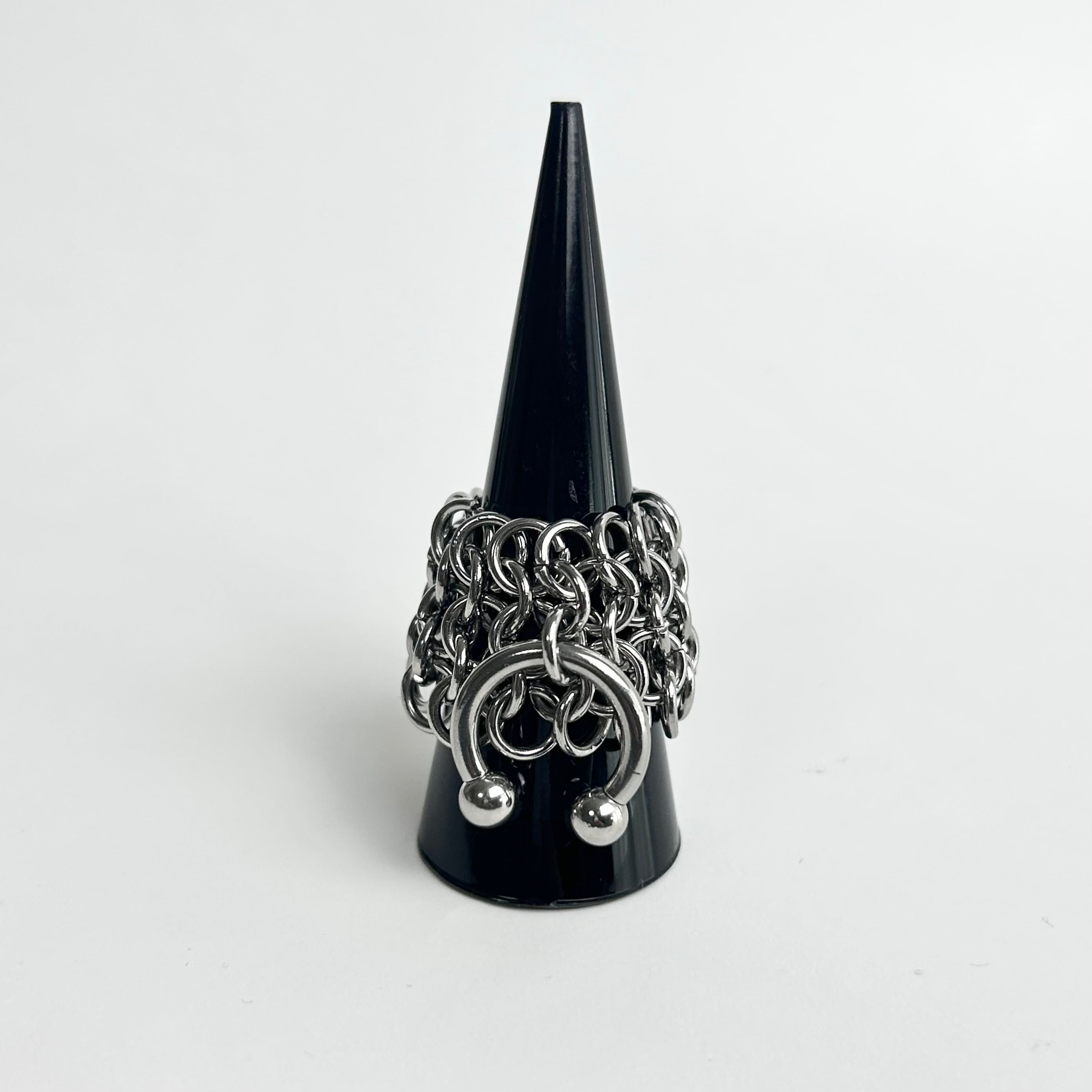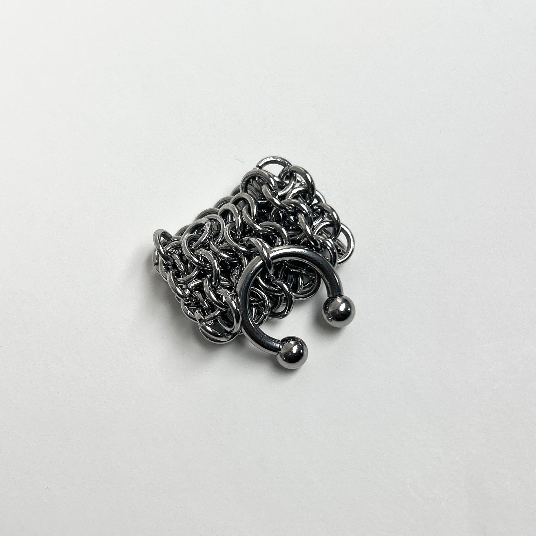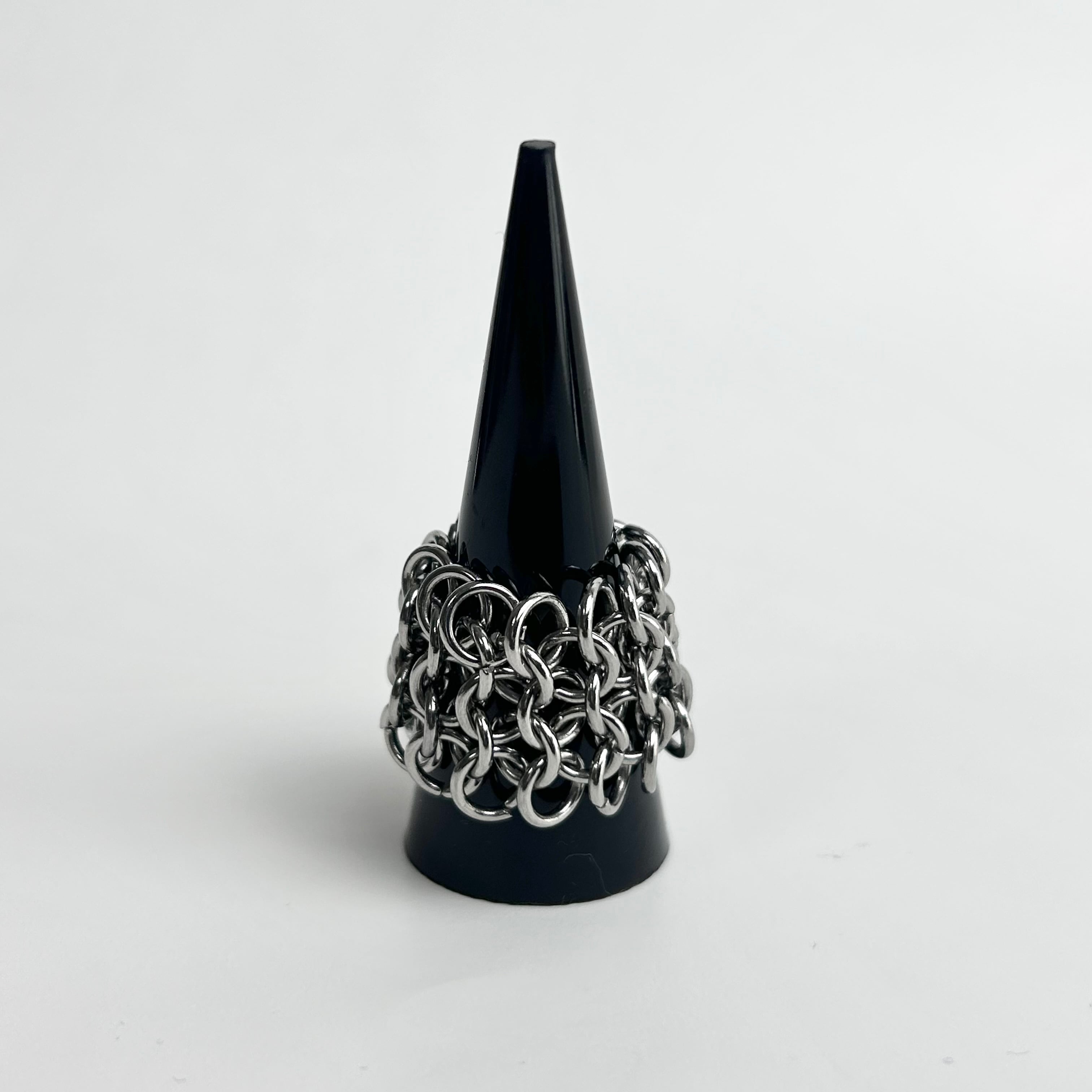 ひとつひとつ丸カンを手作業で開閉し編んでいくchainmailを取り入れております。 ⚪︎Mサイズ (約15-16号相当) ⚪︎素材:ステンレス鋼