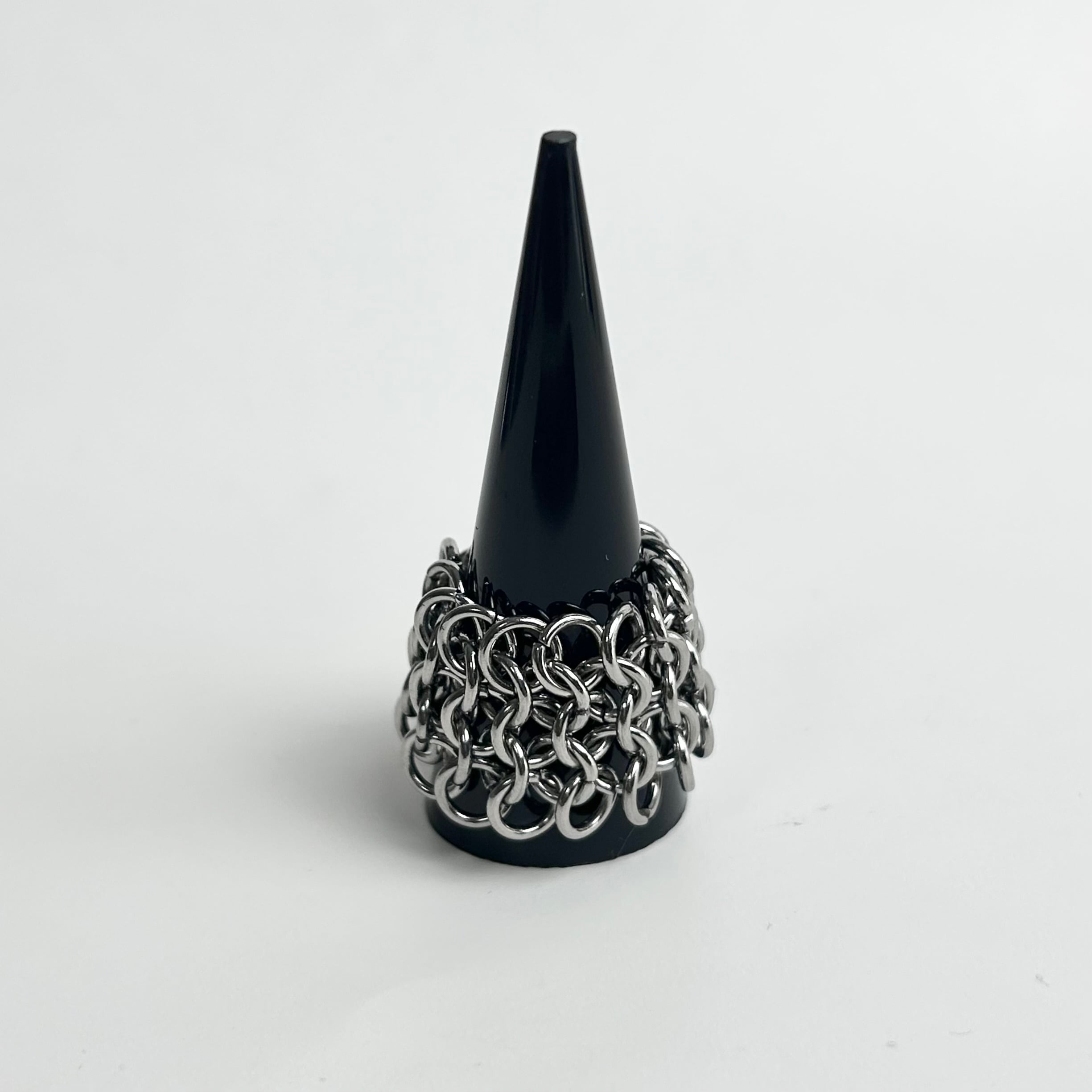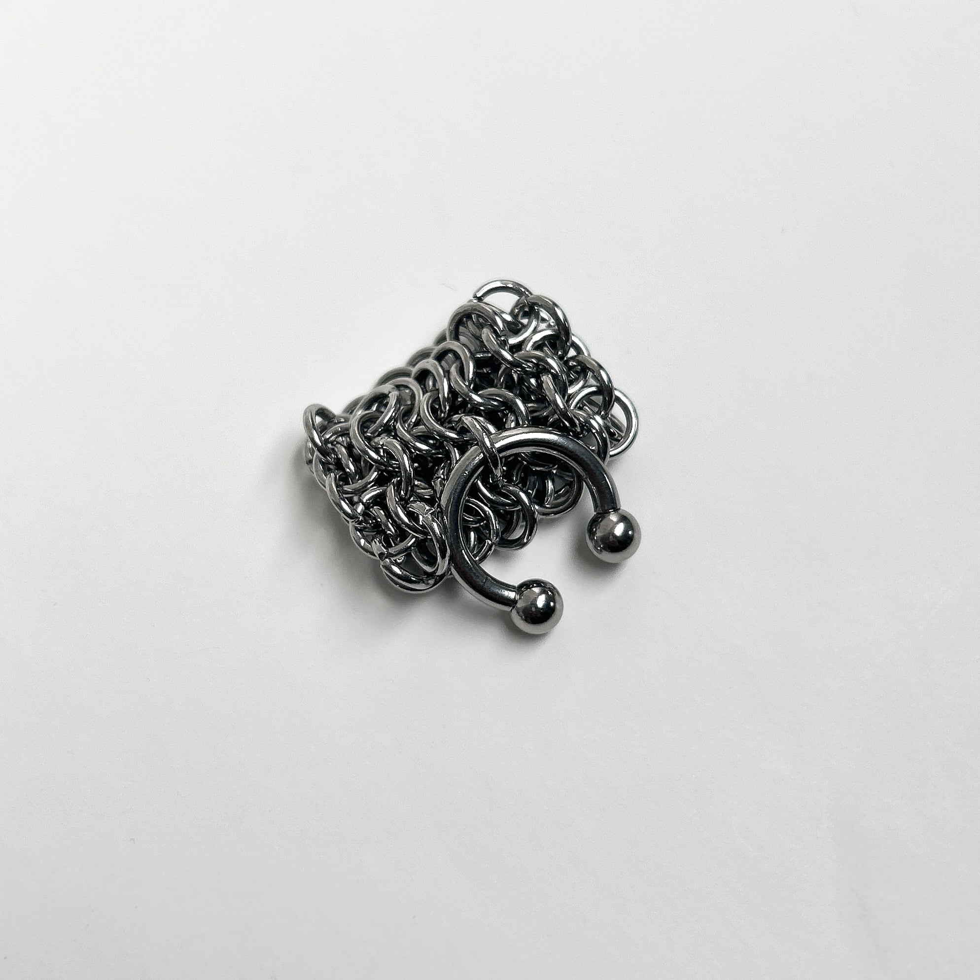 ひとつひとつ丸カンを手作業で開閉し編んでいくchainmailを取り入れております。 ⚪︎Lサイズ (約20-21号相当) ⚪︎素材:ステンレス鋼