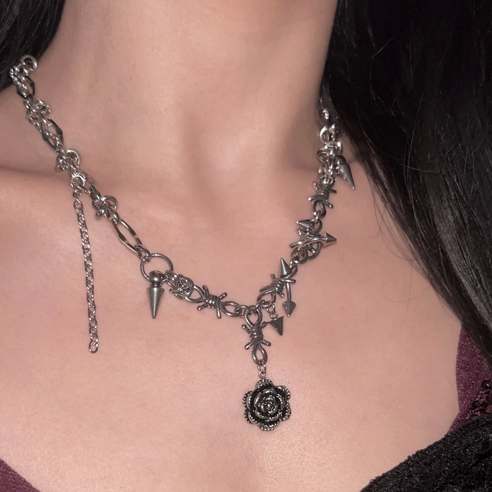 rose and barbwire necklace